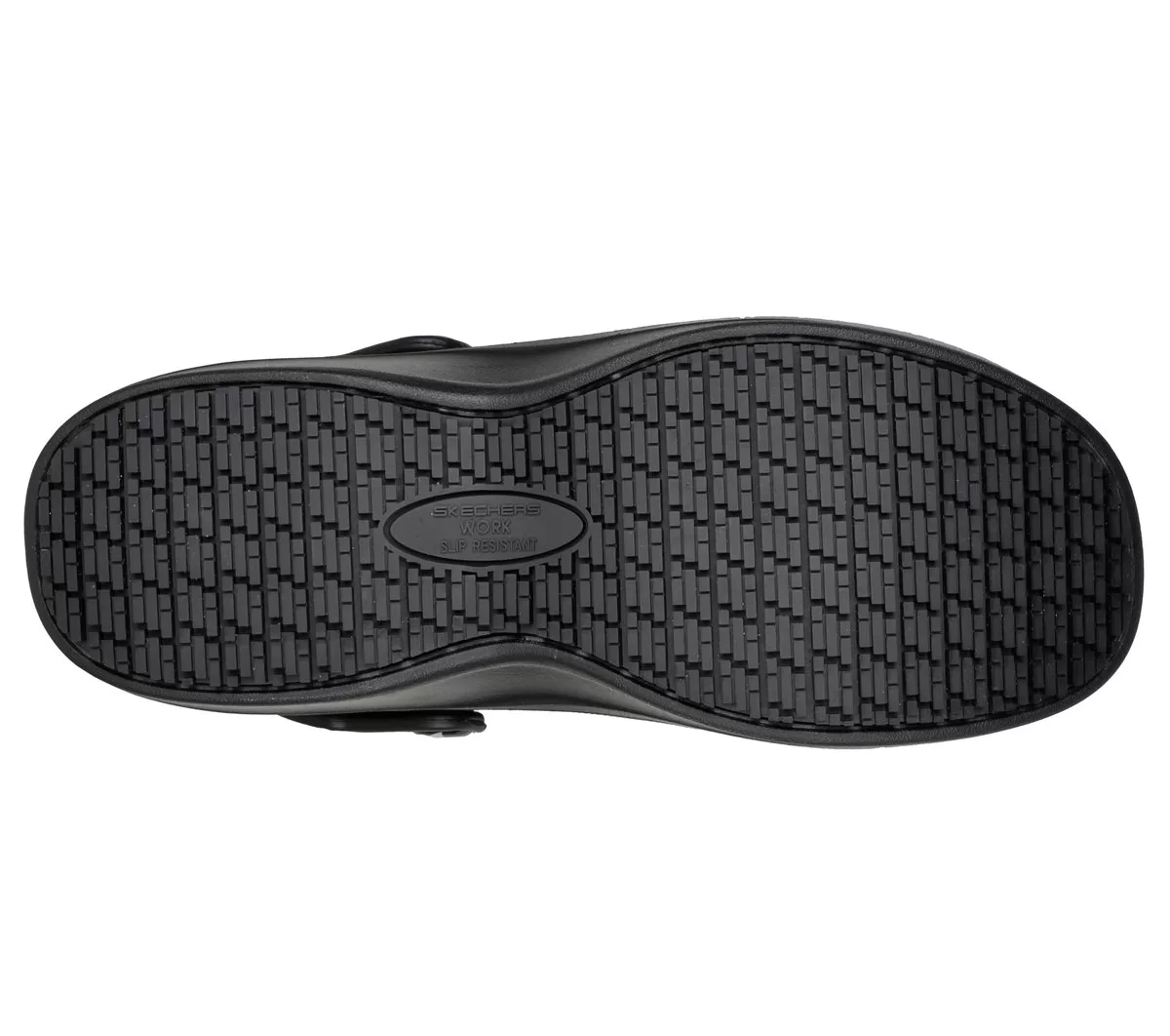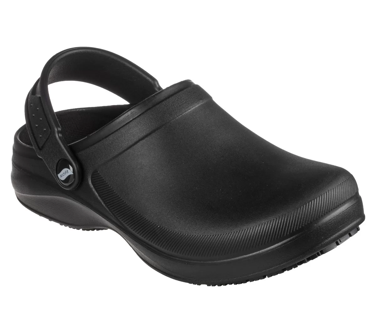 Schlüpfen Sie in den stützenden Komfort, bevor Sie mit Ihrer Vorbereitungsarbeit beginnen, und tragen Sie den Skechers Work™ Arch Fit®: Riverbound – Pasay SR Clog. Dieser rutschfeste Clog wurde mit dem APMA-Gütesiegel ausgezeichnet und verfügt über ein geformtes, flexibles EVA-Obermaterial mit einem Arch Fit®-konturierten Fußbett und einem umwandelbaren Fersenriemen.