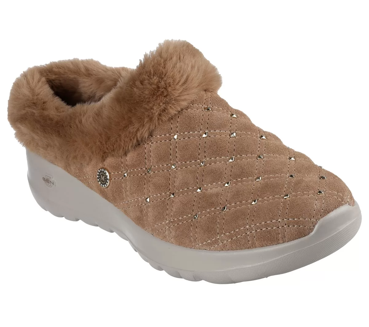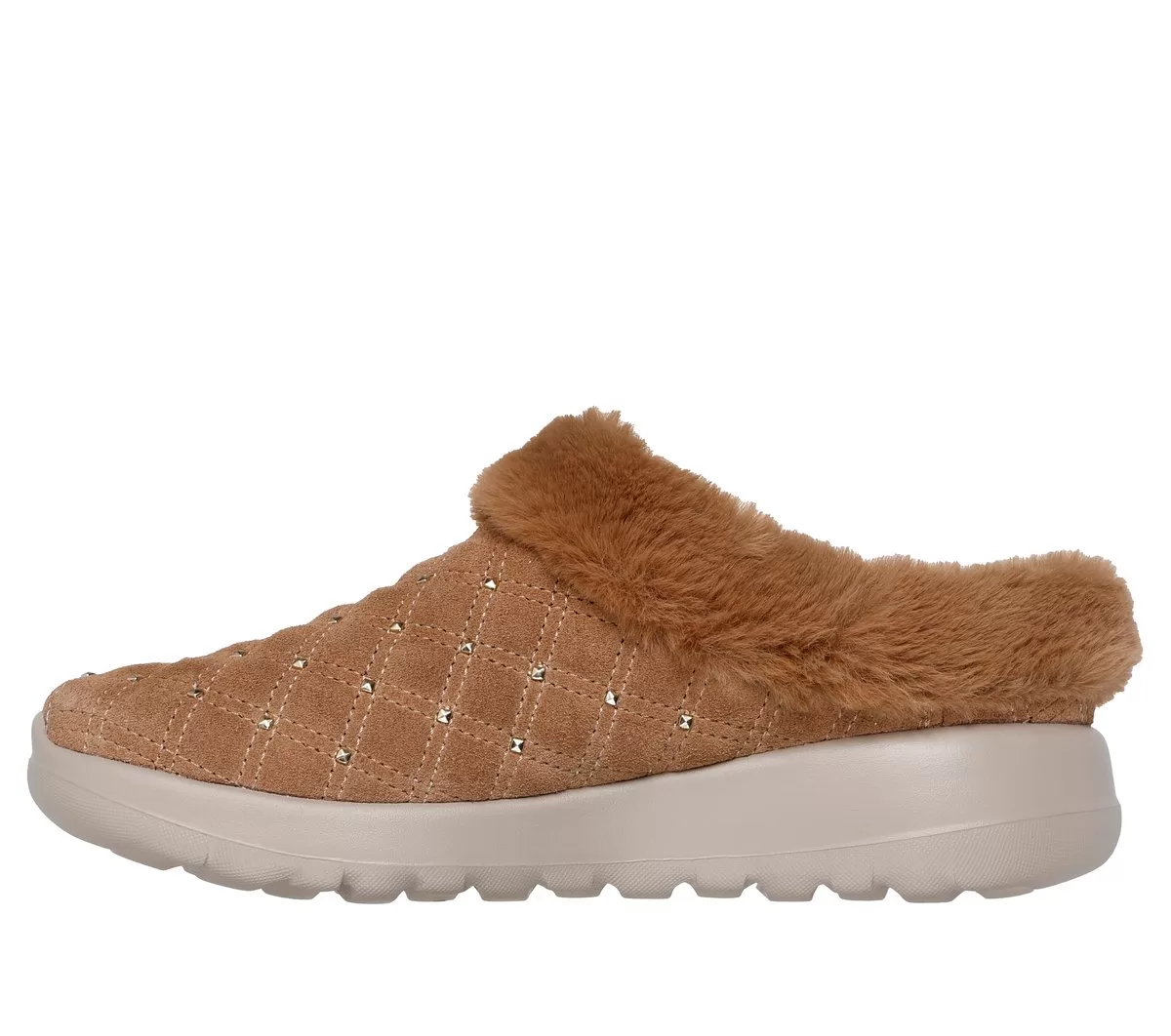 Die gefeierte Lifestyle-Expertin Martha Stewart verleiht Skechers in dieser temperamentvollen Zusammenarbeit ihre einzigartige Note. Entspannen Sie sich in entspanntem Komfort in Martha Stewart x Skechers: On-the-GO Joy – Mallie. Dieser lässige Slipper-Clog verfügt über ein Obermaterial aus Wildleder mit Nietenverzierungen, Kunstfellfutter, eine Skechers Air-Cooled Goga Mat™-Einlegesohle und eine leichte 5GEN®-Zwischensohlenpolsterung.