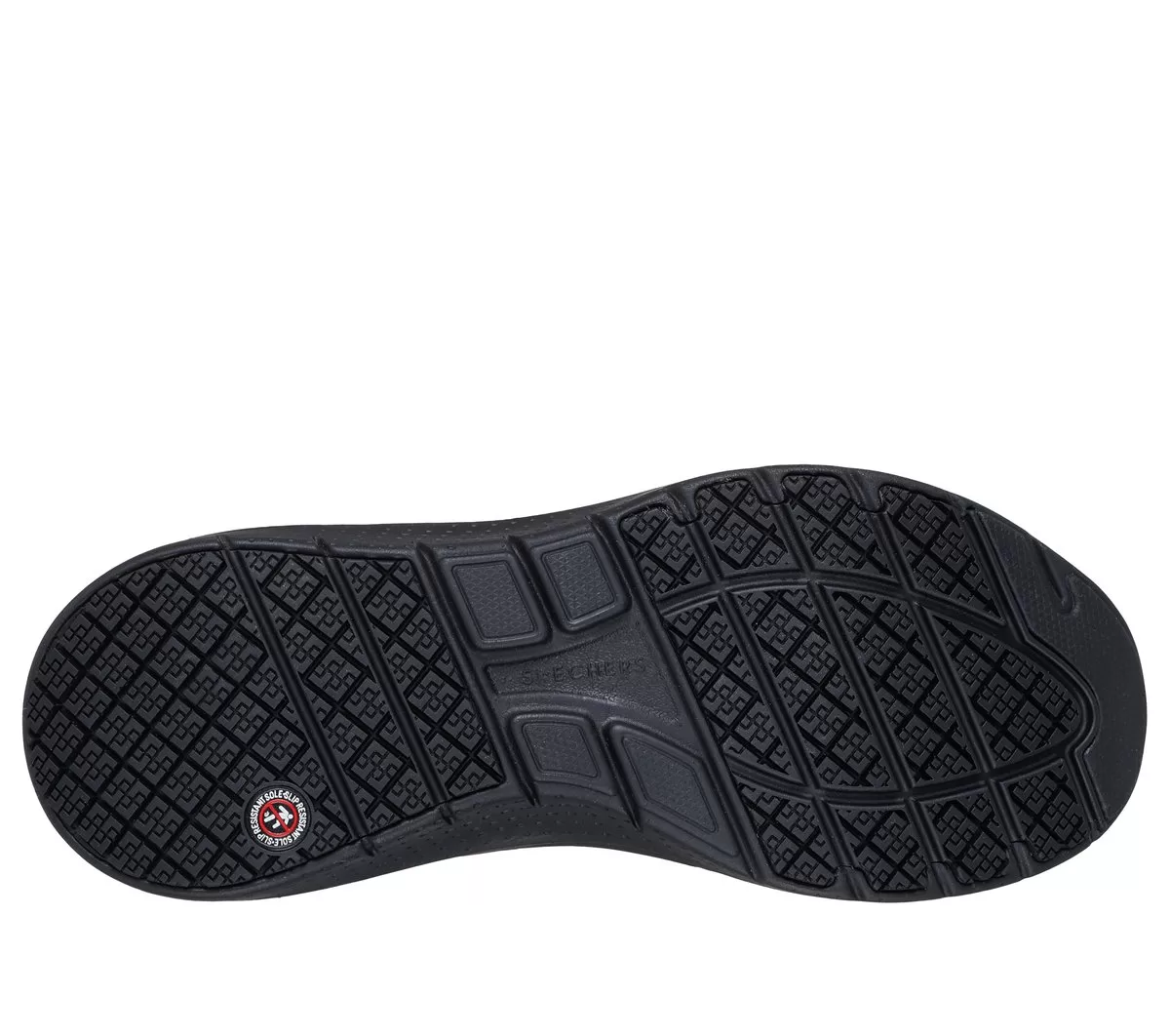 Ganztägiger Komfort und Halt vereinen sich in Skechers Work™: Arch Fit® 2.0 Slip Resistant – Thuana. Dieser rutschfeste Arbeitsschnürschuh verfügt über ein atmungsaktives Obermaterial aus Mesh und Synthetik mit einer herausnehmbaren Arch Fit®-Einlegesohle und einer gut gepolsterten Zwischensohle.