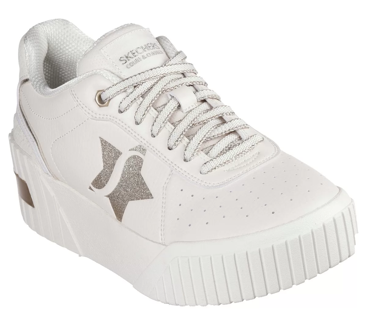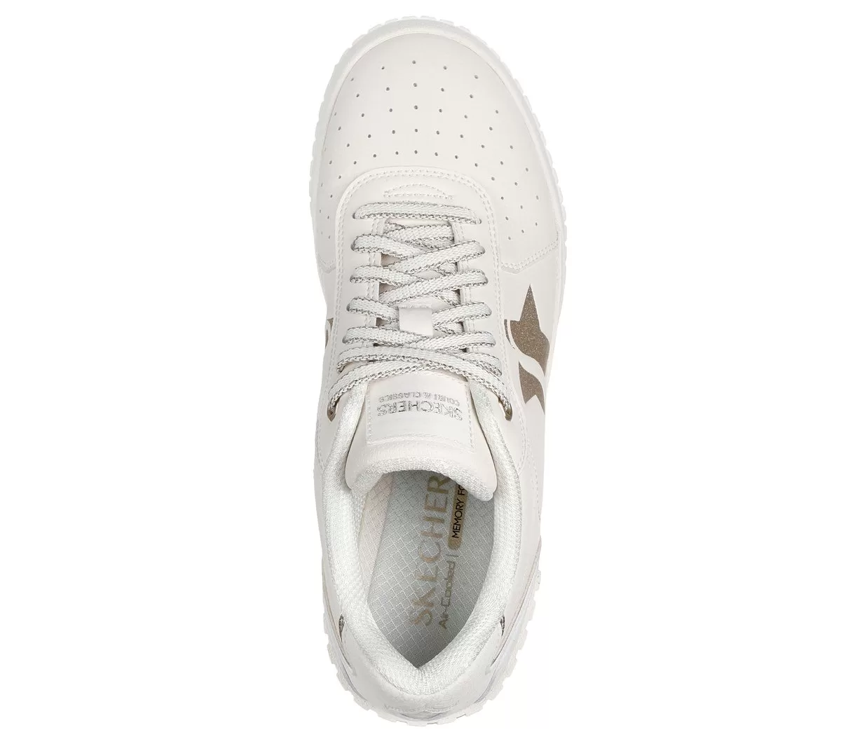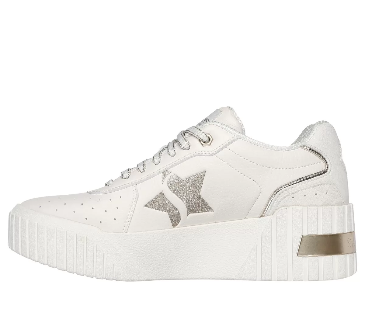 Genießen Sie klassische Court-Looks mit dem Skechers Jumbo Jade – Lifted Chic. Dieser Low-Top-Schnürschuh verfügt über ein Obermaterial aus Duraleder mit Reptilienstruktur und metallischen Überzügen sowie eine gepolsterte Skechers Air-Cooled Memory Foam®-Komfort-Innensohle.