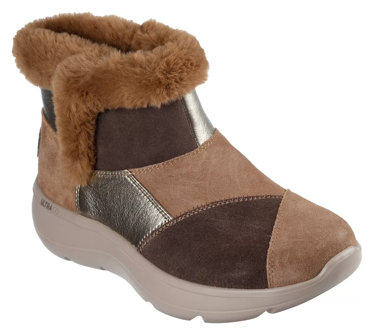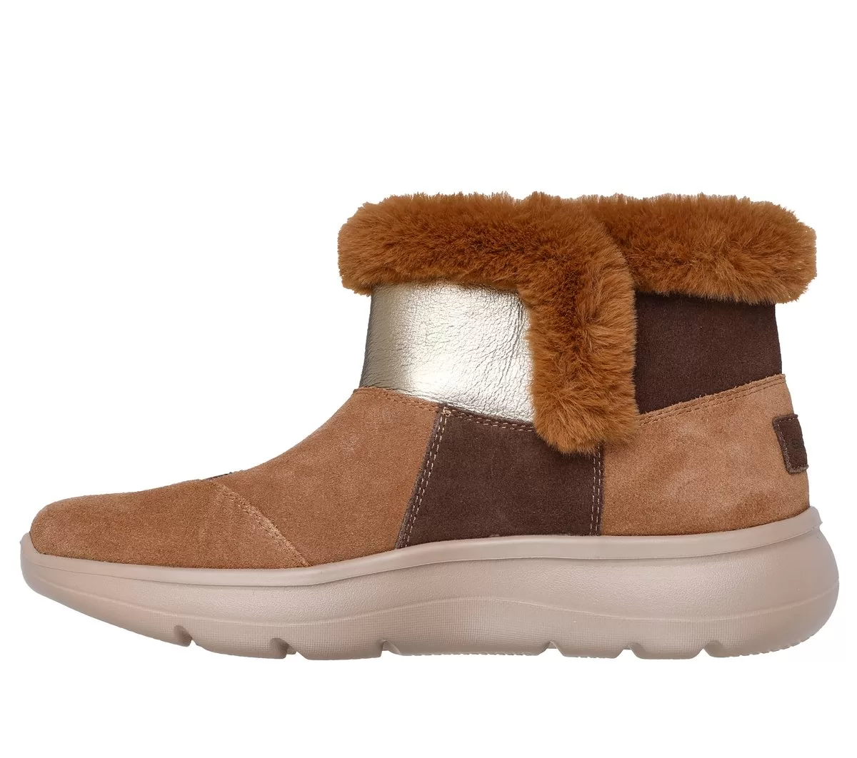 Bleiben Sie die ganze Saison über warm und gemütlich mit Skechers On-the-GO® Encore – Caitlin. Diese Stiefelette zum Hineinschlüpfen verfügt über ein Obermaterial aus mit 3M® Scotchgard® behandeltem Leder im Patchwork-Stil mit einem Kragen aus weichem Kunstfell, eine Skechers Air-Cooled Goga Mat™-Einlegesohle und eine gepolsterte ULTRA GO®-Zwischensohle.