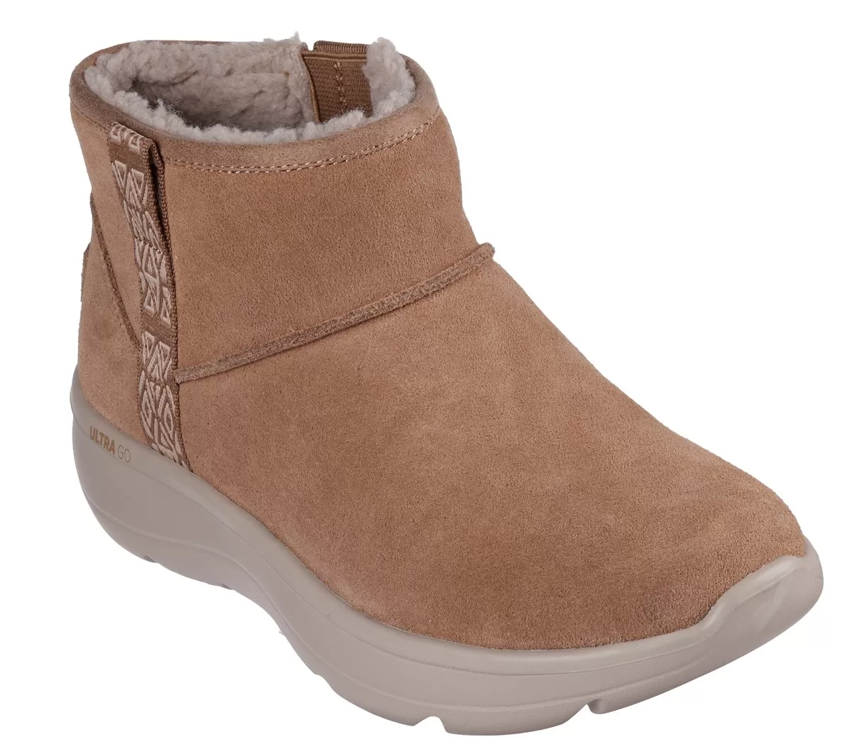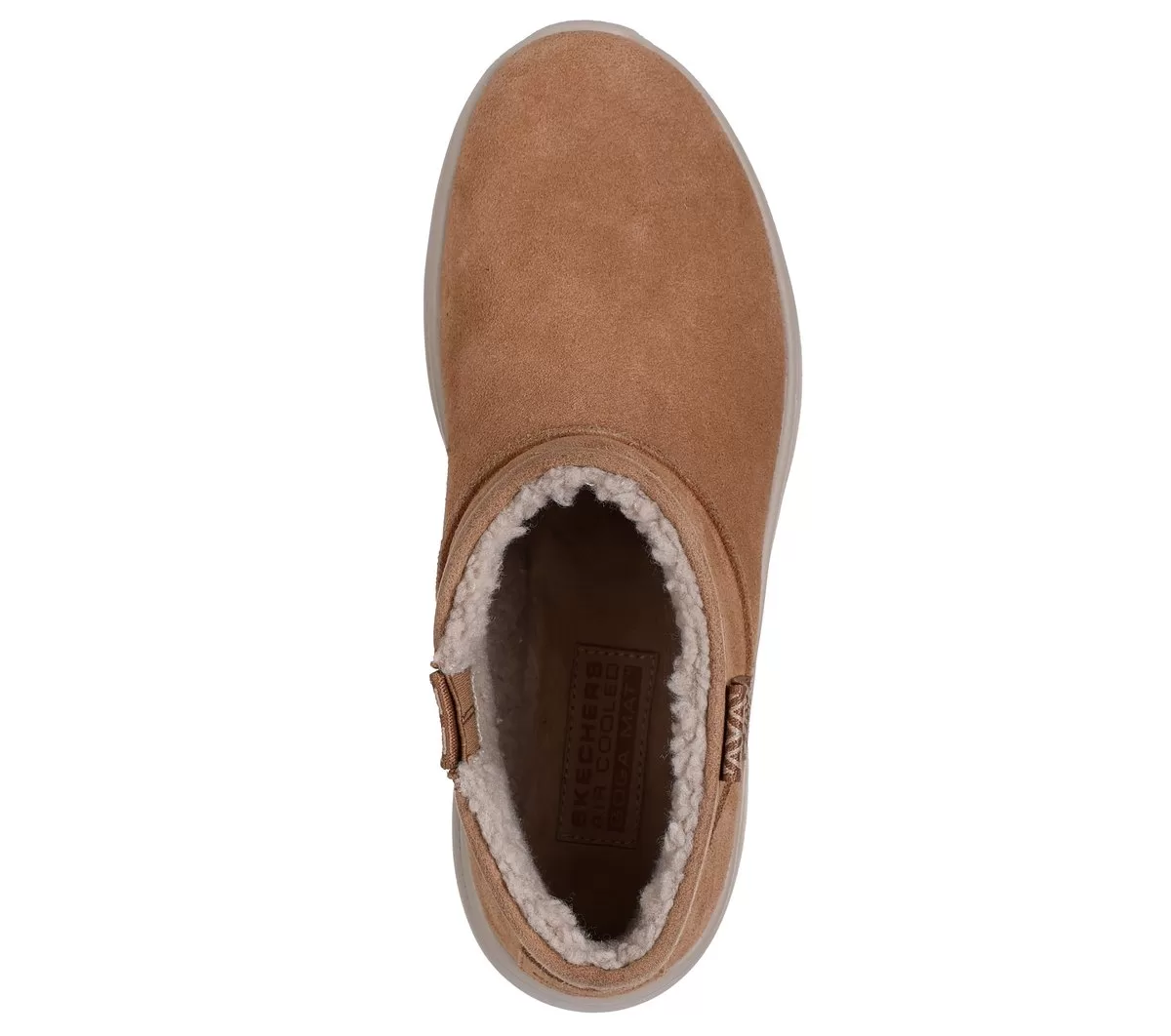 Halten Sie Ihre Zehen schön warm und tragen Sie Skechers On-the-GO® Encore in Premiumqualität. Dieser mittelhohe Chugga-Stiefel verfügt über ein Obermaterial aus echtem Wildleder mit 3M® Scotchgard®-Behandlung und kunstvollen Details, Futter aus Kunstlammfell, ULTRA GO®-Dämpfung und eine Skechers Air-Cooled Goga Mat™-Einlegesohle.
