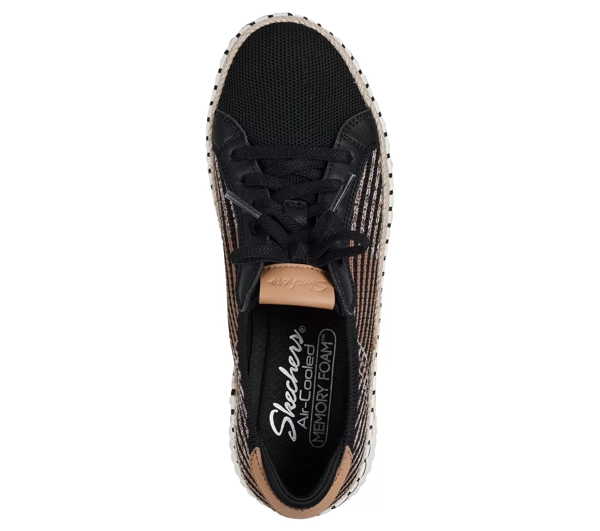 Machen Sie einen Spaziergang mit Stil und bequemem Tragekomfort mit dem Skechers Wilshire Blvd – Breezy Stroll. Dieses vegane Skechers No Tie Fit®-Design verfügt über ein Obermaterial aus Strick und Kunstleder mit Kunstschnürsenkeln, Jutebesatz entlang der Zwischensohle, ein Comfort Pillow an der Ferse und eine gepolsterte Skechers Air-Cooled Memory Foam®-Einlegesohle.