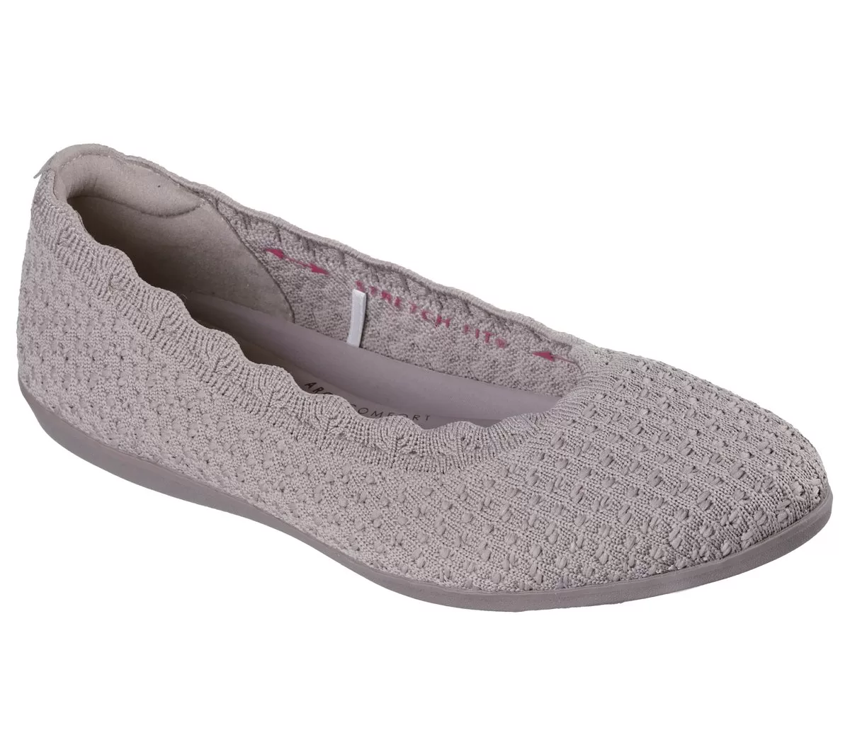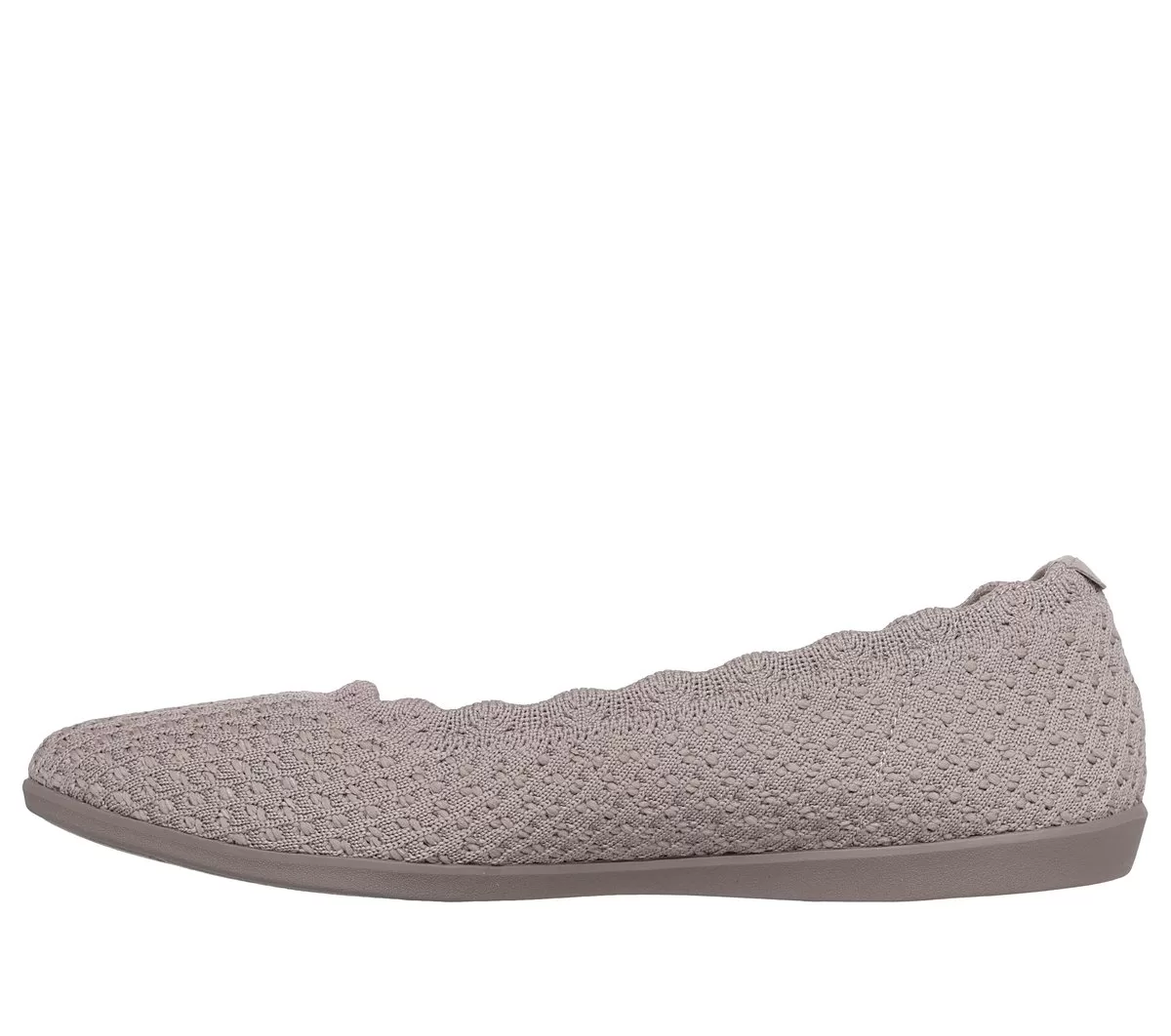 Unser Planet zählt. Vielseitiger Stil trifft auf umweltfreundlichen Komfort mit Skechers Cleo® Walk. Dieser vegane Stretch Fit®-Skimmer aus recycelten Materialien verfügt über ein Obermaterial aus recyceltem Strick mit gewelltem Besatz und eine gepolsterte Skechers Air-Cooled Memory Foam®-Innensohle mit Arch Comfort™-Unterstützung. Unser Planet zählt®: Gut für Ihre Füße. Gut für die Welt.®