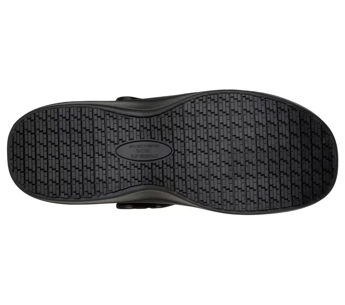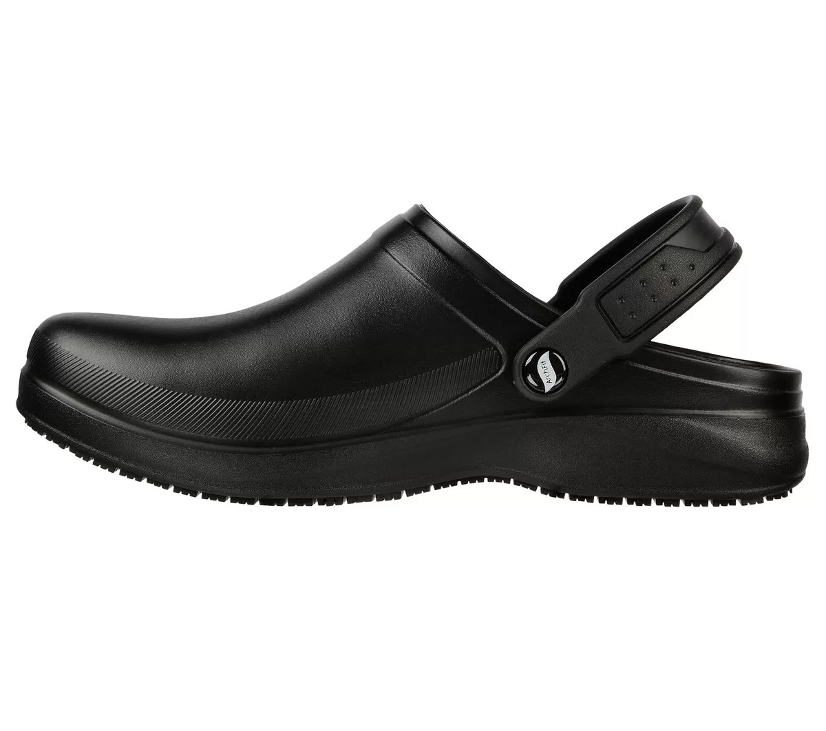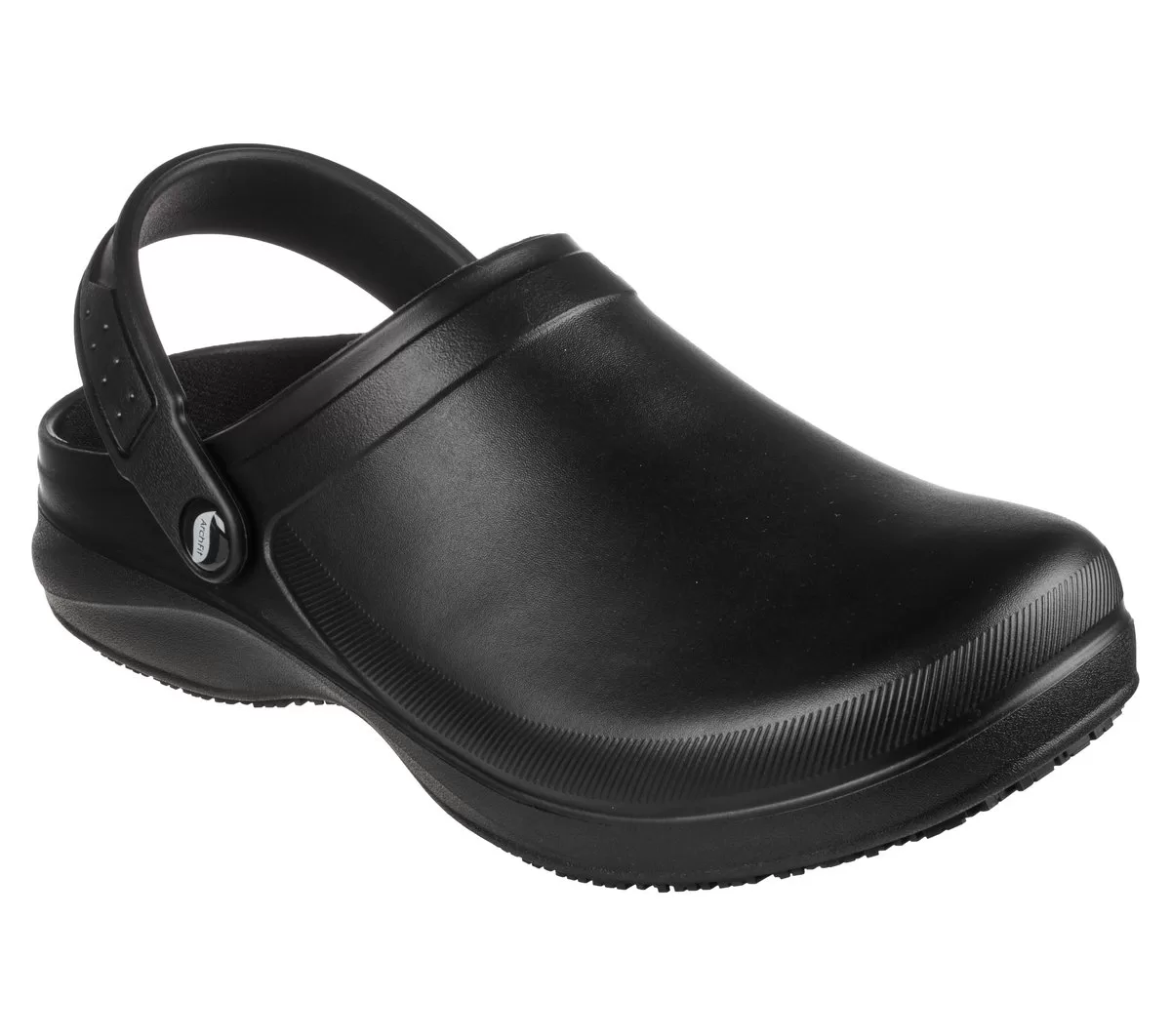 Schlüpfen Sie in den stützenden Komfort von Skechers Work™ Arch Fit®: Riverbound SR, bevor Sie mit Ihrer Vorbereitungsarbeit beginnen. Dieser rutschfeste Clog wurde mit dem APMA-Gütesiegel ausgezeichnet und verfügt über ein geformtes, flexibles EVA-Obermaterial mit einem herausnehmbaren, konturierten Arch Fit®-Fußbett und einem umwandelbaren Fersenriemen.