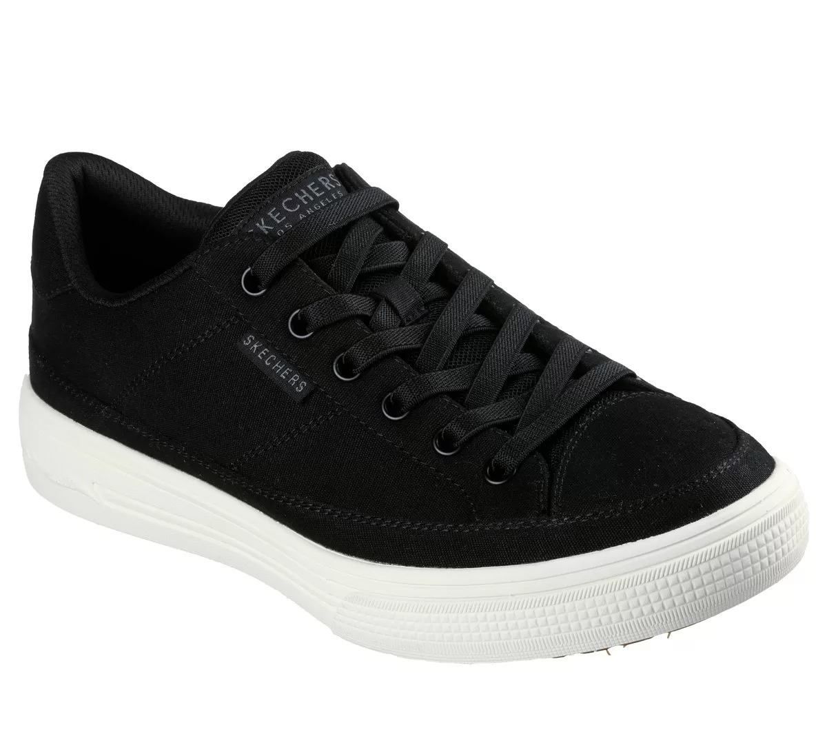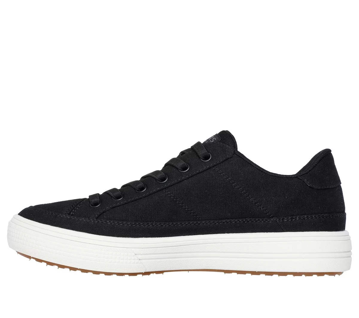 Gehen Sie mit lässigem Stil und gepolstertem Komfort aus dem Haus mit Skechers Street™ Arch Fit® Arcade – Meet Ya There. Dieses bequem zu tragende vegane Design wurde mit dem APMA-Gütesiegel ausgezeichnet und verfügt über ein Obermaterial aus Baumwoll-Canvas mit elastischen Schnürsenkeln, eine herausnehmbare Arch Fit®-Einlegesohle und eine leichte, gepolsterte Zwischensohle.