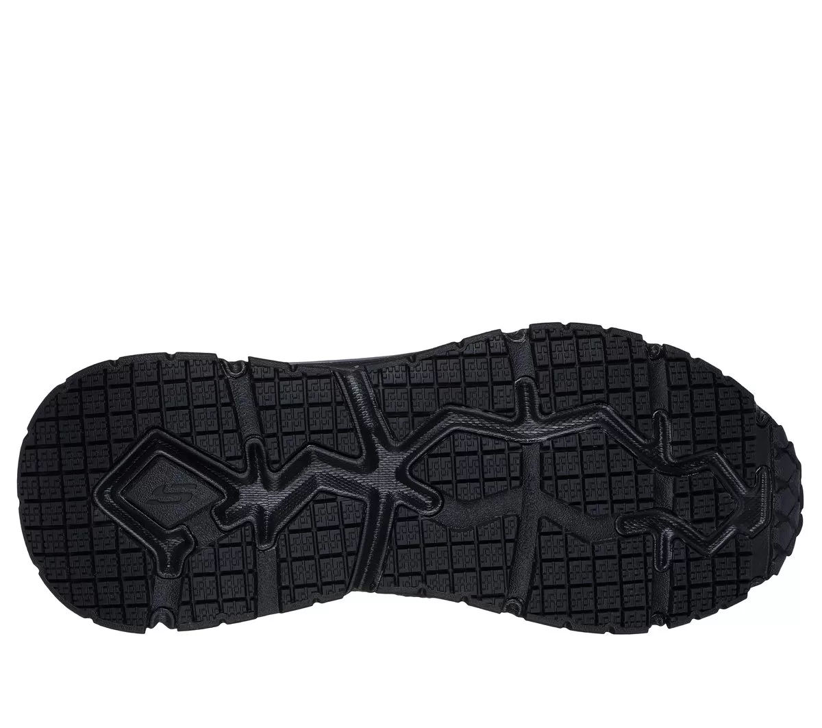 Trittsicherer Komfort und Sicherheit vereinen sich im Skechers Work™: D’Lux Journey Slip-Resistant Carbon Toe. Dieses rutschfeste, vom Wanderschuh inspirierte Design verfügt über ein Obermaterial aus geschnürtem Leder, Synthetik und gewebtem Stoff mit einer gepolsterten Skechers Air-Cooled Memory Foam®-Innensohle und einer Carbonfaser-Nano-Sicherheitskappe.