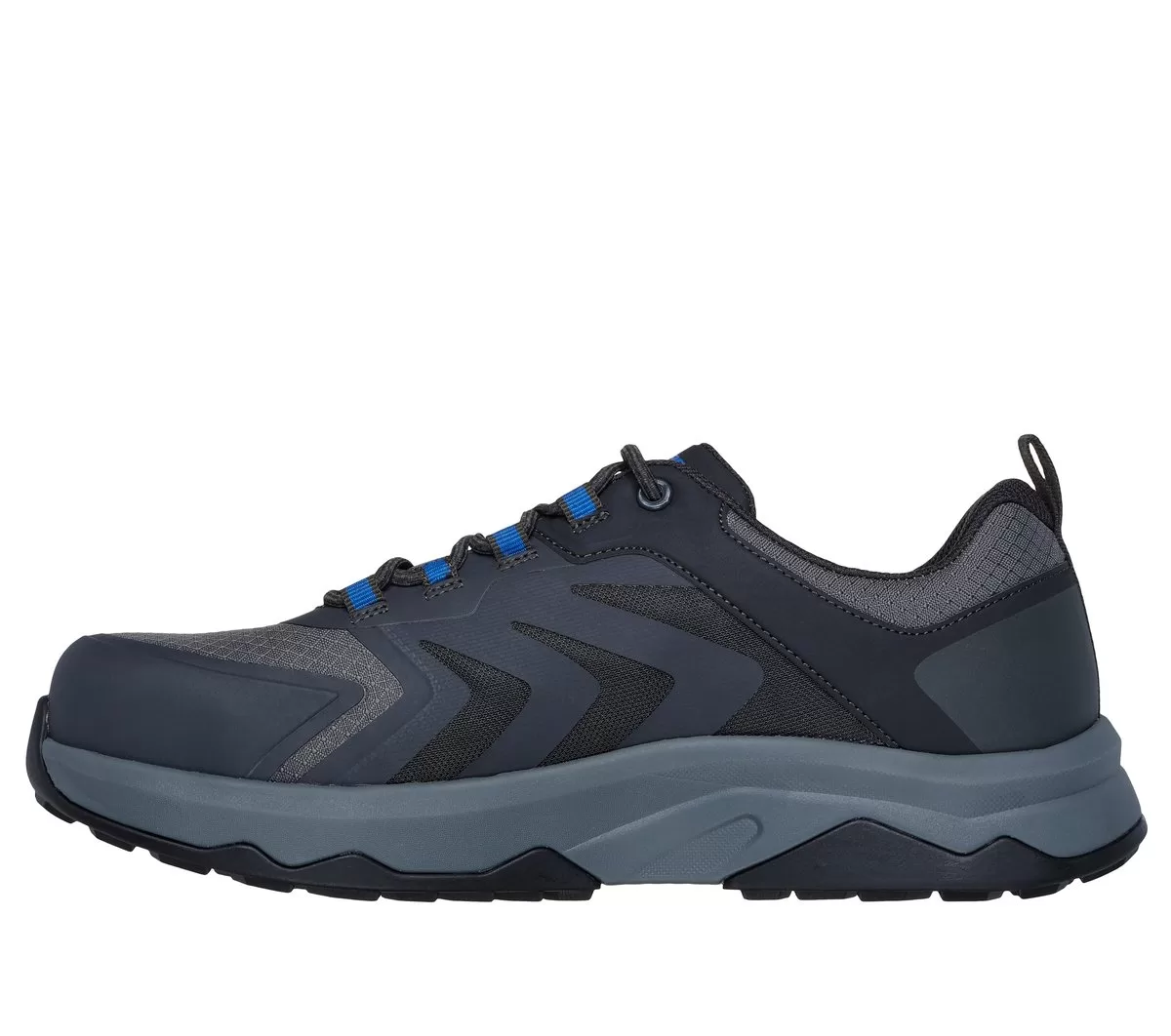 Genießen Sie Komfort und Schutz mit dem Skechers Work™: Speed-Flex Trekker. Dieser rutschfeste Schnürschuh verfügt über ein Obermaterial aus ballistischem Nylon und Synthetik mit einer nichtmetallischen Carbon-Nano-Sicherheitskappe, einer Skechers Air-Cooled Memory Foam®-Innensohle und einer Goodyear®-Gummilaufsohle.