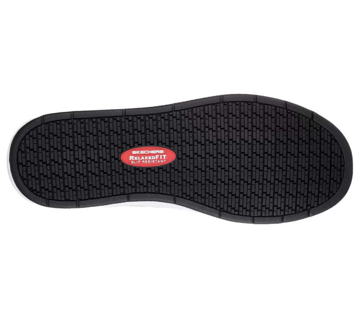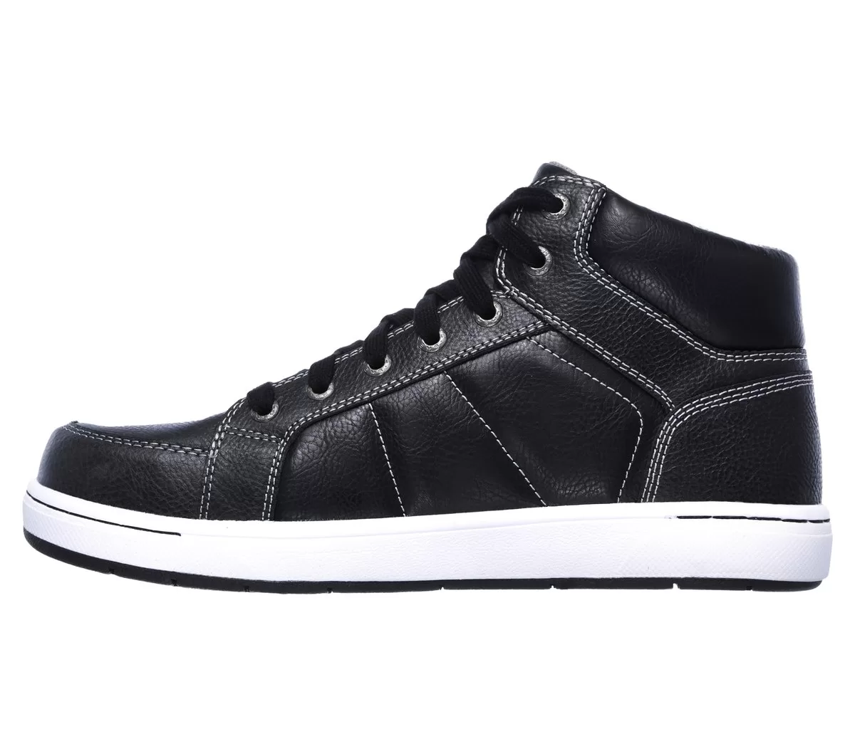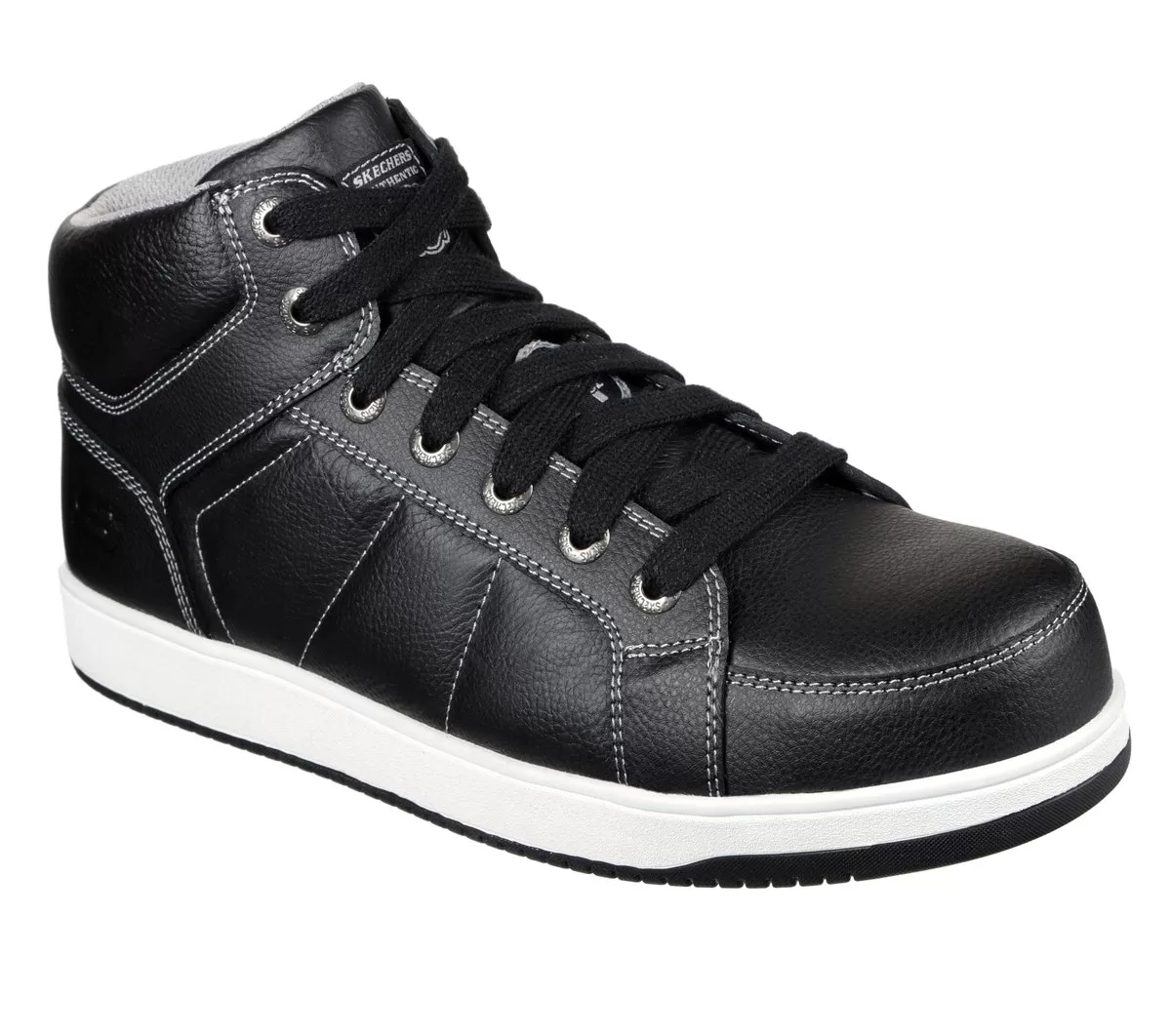 Gehen Sie sicher und bequem zur Baustelle mit Skechers Work™: Watab – Stirling ST. Dieses High-Top-Arbeitsmodell verfügt über ein Obermaterial aus Wildleder und Glattleder mit Schnürung, eine Stahlkappe, eine gepolsterte Skechers Air-Cooled Memory Foam®-Einlegesohle und eine rutschfeste Laufsohle.