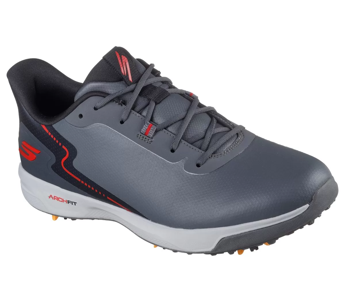 Mit Skechers GO GOLF Elite Vortex – Rival ist erhöhter Komfort in vollem Gange. Dieser Schnürschuh verfügt über ein Obermaterial aus Synthetik, Scorpion Stinger™-Spikes mit GRIPFLEX-Außensohle, eine herausnehmbare Arch Fit®-Einlegesohle, eine ultraleichte ULTRA FLIGHT®-Dämpfung und ist wasserdicht.