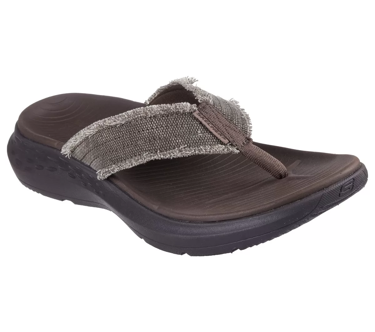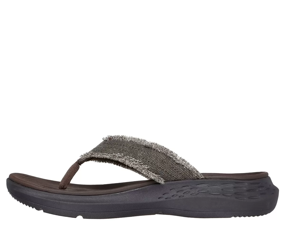 Komfort bei sonnigem Wetter und klassischer Stil vereinen sich im Skechers Relaxed Fit®: Parson SD. Diese Sandale verfügt über ein Obermaterial aus Canvas mit Zehensteg und ausgefranstem Besatz, ein Luxe Foam®-Fußbett und eine gepolsterte Zwischensohle.