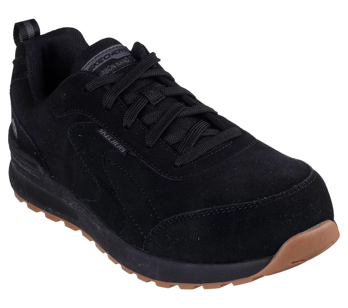 Beginnen Sie Ihre Schicht mit trittsicherem, schützendem Komfort mit Skechers Work™: Bulklin – Atlis ESD. Dieser rutschfeste Arbeitssneaker hat ein Obermaterial aus echtem Wildleder mit Schnürung vorne, eine gepolsterte Skechers Air-Cooled Memory Foam®-Innensohle und eine nichtmetallische Carbon-Nano-Sicherheitskappe.
