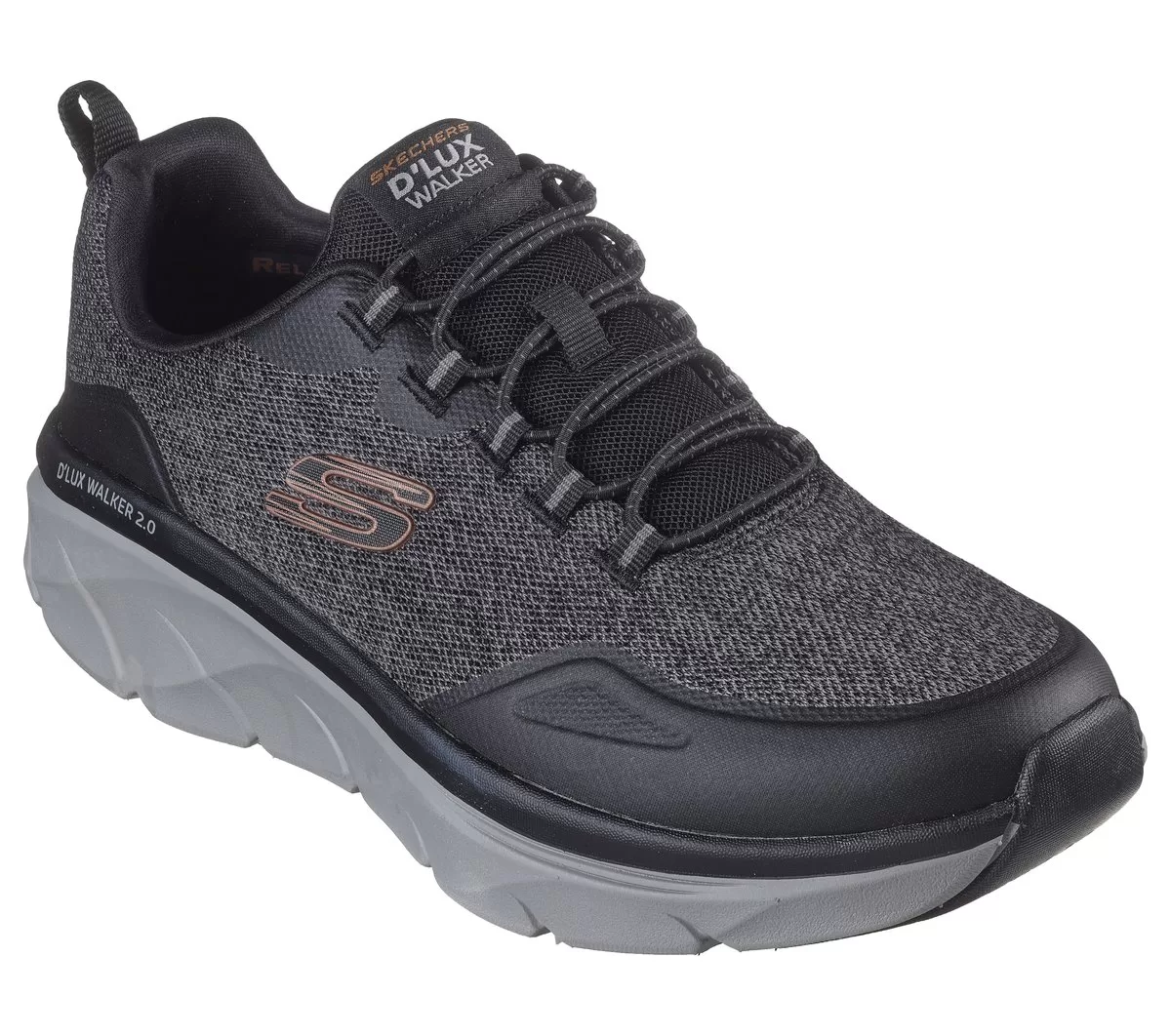 Genießen Sie längere Spaziergänge mit gut gepolstertem Komfort in Skechers Relaxed Fit®: D’Lux Walker® 2.0 – Steadyway. Dieses vegane, sportliche Modell verfügt über ein Obermaterial aus Mesh und Synthetik mit elastischen Schnürsenkeln und einer gepolsterten Skechers Air-Cooled Memory Foam®-Einlegesohle.