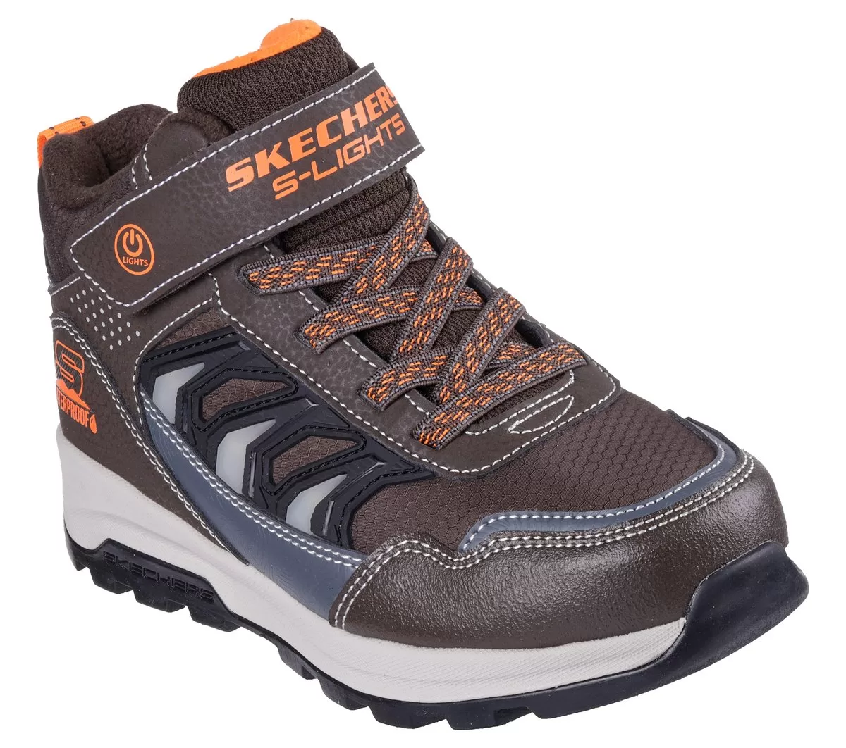 Halten Sie sie bei ihren Outdoor-Abenteuern warm und strahlend im Skechers Storm Blazer – Glow Roam. Dieser wasserdichte Trail-Sneaker-Stiefel verfügt über ein Obermaterial aus Mesh und Kunstleder mit durchgehendem Fleecefutter, elastischen Schnürsenkeln, einem adaptiven Skechers-Verschluss, einem beleuchteten Seitenteil und einer gepolsterten Komfort-Innensohle.